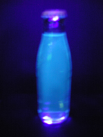The active fluorescent ingredient within tonic water is quinine. This organic compound is extracted from the bark of the Cinchona tree and is responsible for the bitter taste of tonic water, as well as the liquid's anti-malarial properties. The brightness of light emitted by quinine, when exposed to ultraviolet light, is so reliable and stable that quinine is used as a fluorescent intensity standard, against which levels of fluorescents are measured and machinery calibrated.